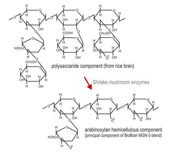 Componente polisaccaride (da crusca di riso) > enzimi del fungo Shitake > componente emicellulosa arabinossilano (componente principale della miscela Bi.Bran MGN-3)